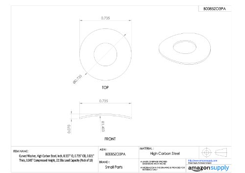 Curved Washer, High Carbon Steel, Inch, 0.327" ID, 0.735" OD, 0.021" Thick, 0.045" Compressed Height, 22.5lbs Load Capacity (Pack of 10)