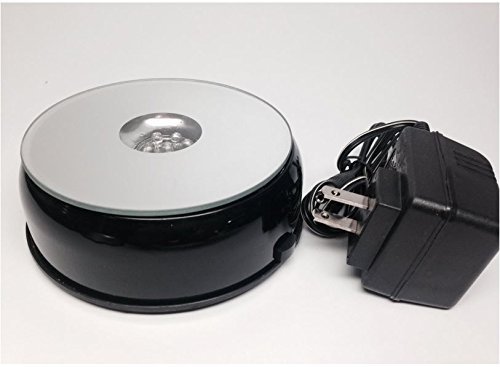 Sunrise Crystal Silver Mirrored Top 7 LED Rotating Display Base White Lights w/ Adapter, 4-Inches (Black)