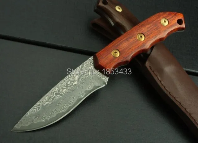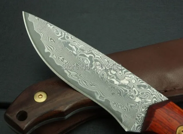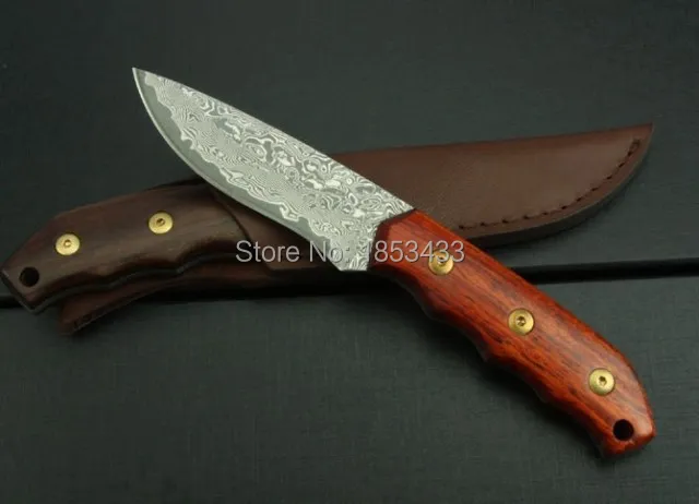 | [해외] SK023 다마스커스 스틸 나이프 블레이드 사냥 칼 나무 핸들 수제 다마스커스 단조 스틸 나이프 EDC 칼 |