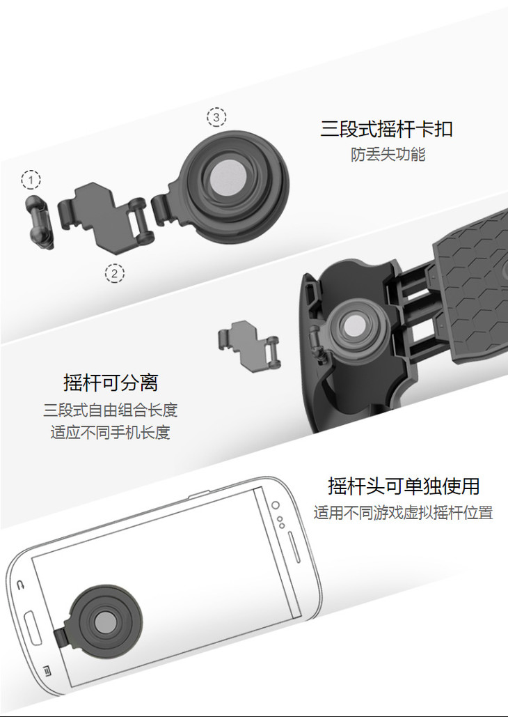答:使用过程中,手指必须接触到摇杆中心部分的金属,使金属与手机屏幕接触产生导电,才可控制方向;如果游戏中只推动金属外圈塑胶而手指没有接触到金属,即可能失去导电而不能控制方向。