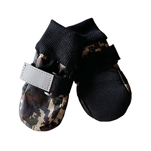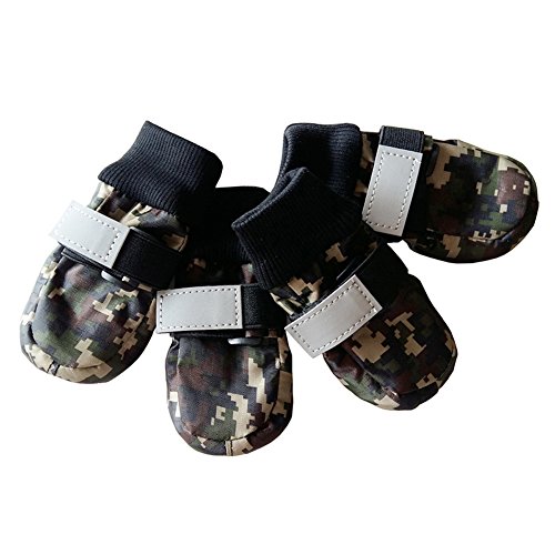 -. Title : Julvie Camo Pet Dog Shoes with Reflective Velcro Paw Protector for Medium to Large Dogs 4 Pcs