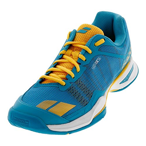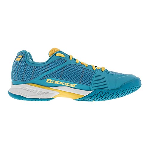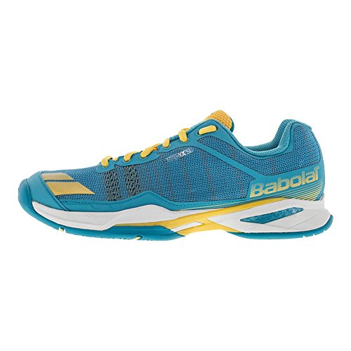 Studio : BABOLAT Publisher : BABOLAT Binding : Apparel Product Description The Babolat Women`s Jet Team Shoe is the lightest shoe that Babolat has ever made. Weighing in at 11.5 ounces (size 10.5) these shoes are built for insane speed on the court to make you faster to the ball. The upper is extremely light yet supportive with its Matryx fabric that`s a mix of kevlar and polymide threads. 0