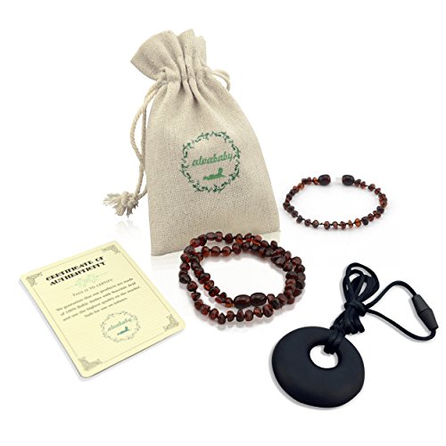 ALVABABY One Amber Teething Necklace & One Teething Bracelet & One Teething Relief Silicone Necklace (Unisex) - Anti Flammatory Drooling & Fussiness...