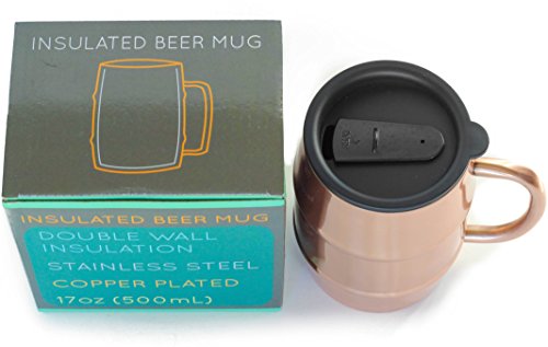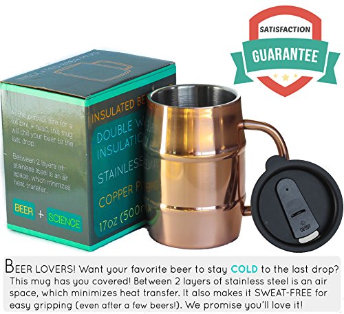 Insulated Beer Mug - Ice Cold to the Last Drop! Perfect Gift for Beer Lovers - Double Wall Stainless Steel, Copper Plated 17oz 500mL