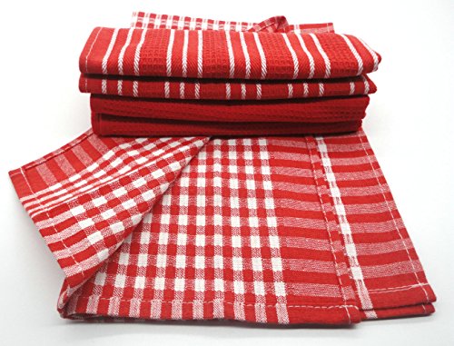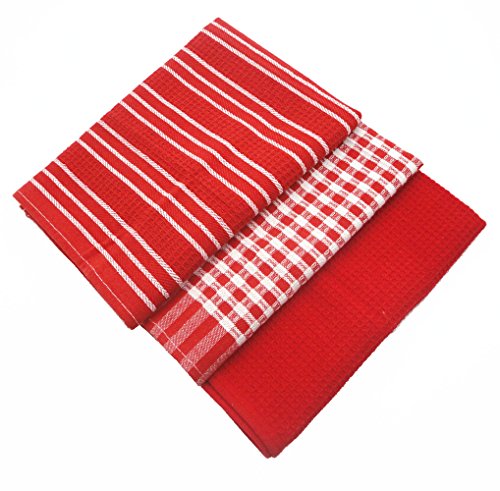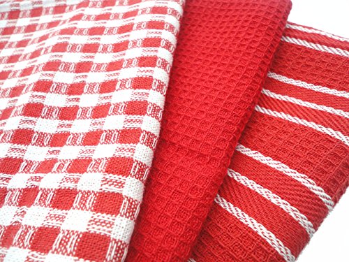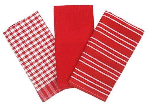 Mia'sDream Cotton Classic Kitchen Collection Dish Towels, Pack of 3, 18 x 25-Inch (Red)