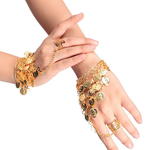 Sealike Beautiful Belly Dance Gold Triangle Bracelet Gypsy Jewelry Coin Bracelet Hand Decoration Wrist Bangle Ring with a Stylus (Gold)