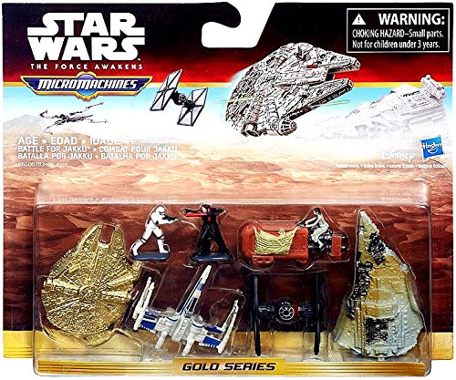 -. Binding : Toy -. Brand : Star Wars -. EAN : 0630509404278 -. Feature : Includes 5 micro vehicles and 2 micro figures / Grow your Micro Machines collection with these vehicles / Crafted to look like the real vehicles from Star Wars: The Force Awakens -. Label : Hasbro -. Manufacturer : Hasbro -. Model : B6600AS0 -. MPN : B6600AS0 -. PackageQuantity : 1 -. PartNumber : B6600AS0 -. ProductGroup : Toy -. ProductTypeName : TOYS_AND_GAMES -. Publisher : Hasbro -. Studio : Hasbro -. Title : Star Wars: The Force Awakens Micro Machines Deluxe Vehicle Pack Battle for Jakku -. UPC : 630509404278 -. Warranty : No Warranty