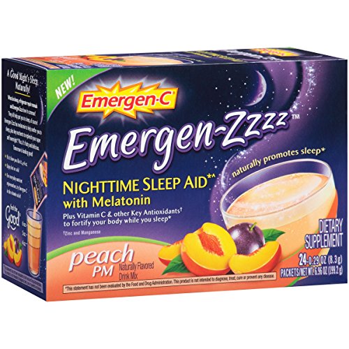 Voted Number 1 Product of the Year in the Consumer Survey of Product Innovation 2016 Vitamins/Supplements Category! Y Bottoms up. Eyelids down. Fall asleep naturally with Emergen-Zzzz. It contains melatonin, a natural sleep aid , and vitamin C and other antioxidants like Zinc and Manganese to fortify you while you sleep*. Emergen-Zzzz is available in natural, delicious peach and berry flavors. Take one (1) packet 30 minutes before bedtime as needed for occasional sleeplessness. Stir contents into a glass with 4-6 ounces of water.Feature