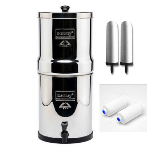 -. Feature : Easy to assemble, use and clean. The Travel Berkey is constructed of heavy duty polished stainless steel with no seams to rust or leak / Filter lifespan of over 1,000 gallons for the set of two. Silver impregnated for self-sterilizing properties. P.R.IME ONLY PF-4 fluoride filters / Includes 1 stainless steel Travel Berkey, 2 - 7" ceramic filters, 2 - PF-4 Fluoride Filters / The two 7" British Berkefled ceramic filters are WRAS approved and meet NSF standard 53 for turbity. designed for removal of Bacteria, Chlorine, and Lead