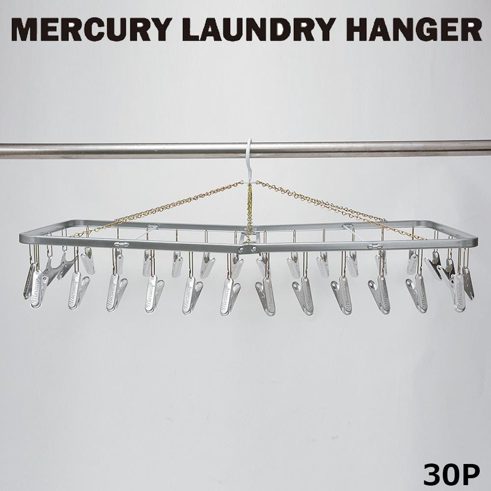 クリップが30個付いています。使わないときは半分に折り畳めるのでコンパクトに収納できます。 製造国:日本 素材・材質:スチール、アルミ 商品サイズ:W80.5×H28×D35cm ※サプライヤー直送品 ご注文後5~6営業日後の出荷となります【商品名】キーストーン マーキュリー ランドリーハンガー30P MELAHA30