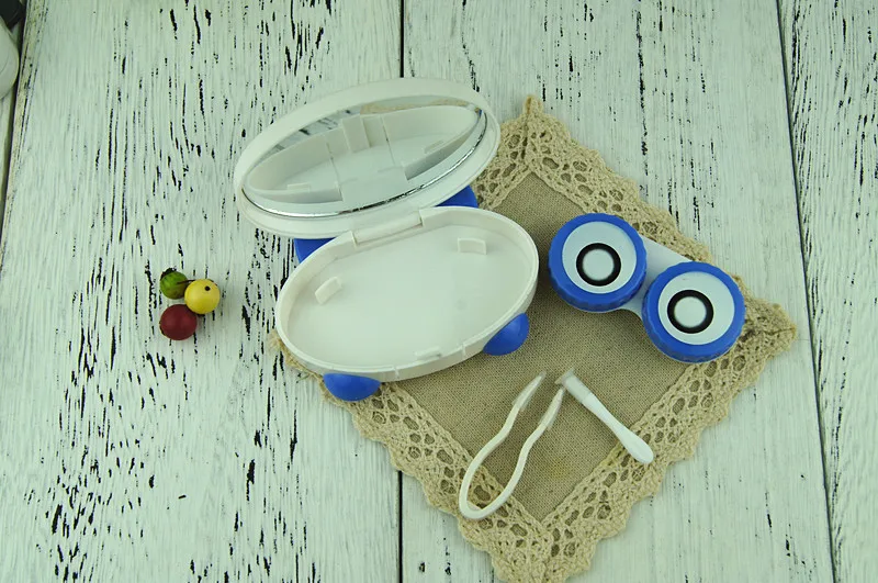 만화 팬더 모델링 포켓 미니 콘택트 렌즈 케이스 여행 키트 쉽게 캐리 거울 컨테이너 렌즈 안경 상자 눈 케어 키트