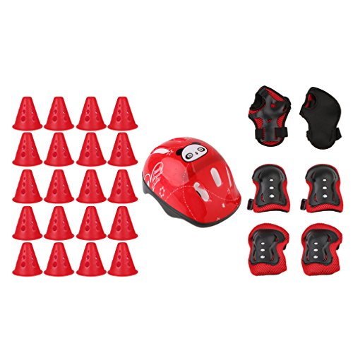 Description: - Suitable for kids age 3-12 years old - 7 Pieces protective helmet, elbow, knee and wrist pad set in vivid pink, red and blue - All components have adjustable straps and fastening tape, comfortable and convenient to wear - High-density foam padding for comfort and cooling, very shockproof, prevent kid from getting injured - Suitable for roller skating, scooters, gokarts, skateboards, cycling and other outdoor sports - 3 inch brightly colored Red Cones, great for setting up field boundaries foragility drills, or for setting up obstacle courses. Come in 5 pieces. Specification: - Material: PVC Foam Sponge - Color: Red - Helmet Size ( Outer Length x Outer Width ): Approx. 26 x 20 cm/10.2 x 7.9 inch - ( Inner Length x Inner Width ): Approx. 21 x 17 cm/8.3 x 6.7 inch - Helmet Circumference: 56cm/22 inch - Knee Pad Size ( L x Upper W x Under W x H ): Approx. 13.5 x 10.5 x 9.5 x 7 cm/5.3 x 4.1 x 3.7 x 2.8 inch - Elbow Pad Size ( L x Upper W x Under W x H ): Approx. 12 x 10 x 9 x 5 cm/4.7 x 3.9 x 3.5 x 2 inch - Wrist Pad Size ( L x W ): Approx. 16 x 11 cm/6.3 x 4.3 inch - Cones Height: Approx. 3 inch; Base Diameter: Approx. 3.1 inch; Material: PE; Color: Red Package Includes: 7 Pieces Roller Skating Protective Set The set contains: 1 x Helmet 2 x Knee Pads 2 x Elbow Pads 2 x Wrist Guards 20 Pieces Mini Cones