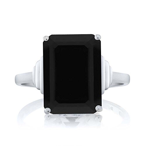 -. Title : Sterling Silver Emerald Cut Black Onyx Women's Ring (5.00 cttw, Center Onyx:14X10MM, Available in size 5, 6, 7, 8, 9)