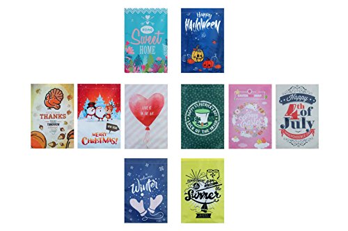 Seasonal Garden Flag Set of 10 for Outdoor - Decorative Holiday Flags for Happy Gardens - Double Sided - Original Artworks - Durable - 12x18 inches
