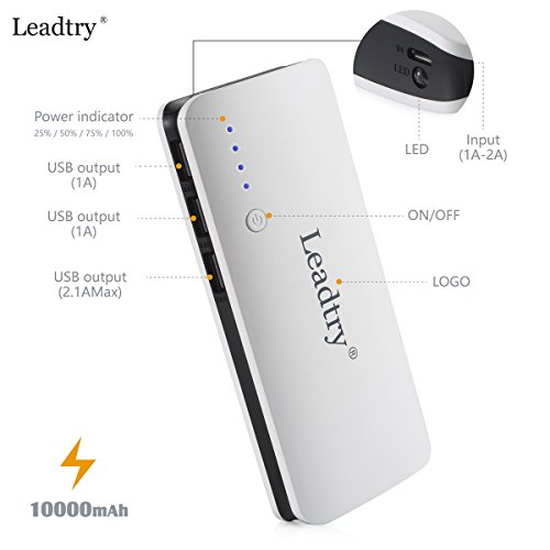 -. Title : Power Bank Leadtry® 10000mah External Battery with Powerful Triple USB Port Portable Charger Backup Pack Build in Flash Light for Iphone 6s 6 Plus, Ipad and Samsung Smart Phone, Tablet Pcs