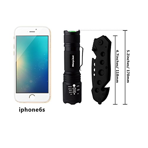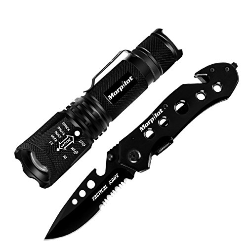Morpilot Tactical Flashlight Set, Tactical LED Torch, 5 Mode Portable Handheld LED Flashlight, Outdoor Water Resistant Torch for Camping, Hiking, Backpacking, Fishing / Rescue Pocket Knife