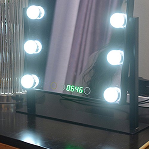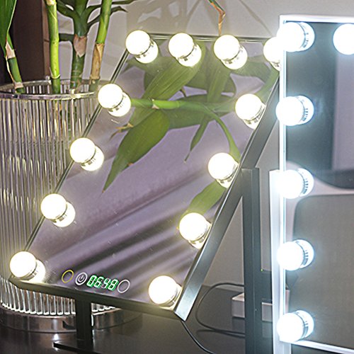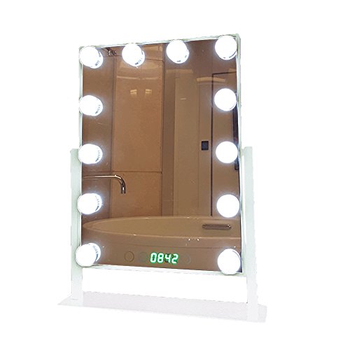 Geek-House Tabletops Lighted Makeup Vanity Mirror Hollywood Style LED Bulb & Dimmer & Clock USB Powered Valentine's Day Gift White