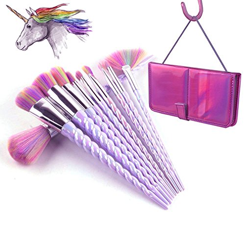 Unicorn Makeup Brushes Set Make up Brushes Professional Foundation Powder Eyeshadow Blending Concealer Cosmetics Tools Brushes Kit with Case (10 Pcs)