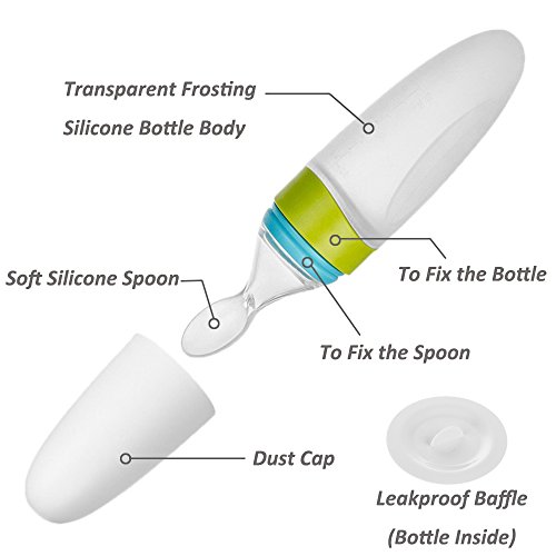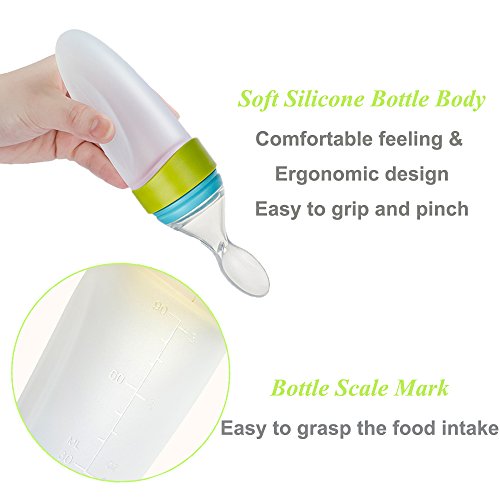 Bestgle 90ml Silicone Baby Food Squeeze Bottle Spoon Feeder with Dust Cover for Baby Toddler Infant Cereal Food Supplement