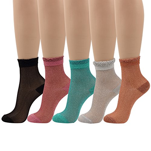 -. Title : WOWFOOT Women's Shiny Peal Socks Colorful Glitter Crew Socks for Girl 5, 6 Pair