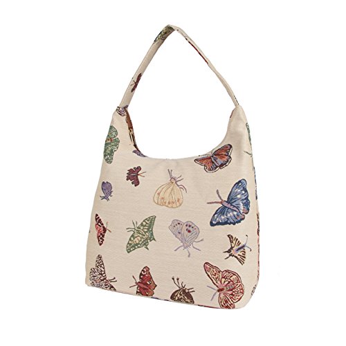 Butterfly Ladies Fashion Canvas Tapestry Top Zip Hobo Shoulder Bag Beach Bag by Signare (HOBO-BUTT)