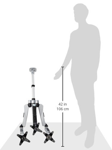 Three monitors can be positioned landscape or portrait, side by side straight, side by side in oval shape, one on top of two or one on each side in a circle; Tilt: 105°; Rotation: 360°; Swivel: Max 360°; Mounting Pattern: VESA compliant: 75x75 and 100x100