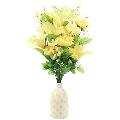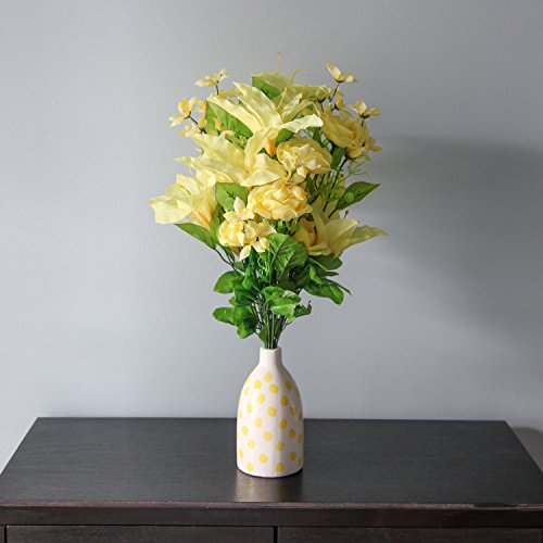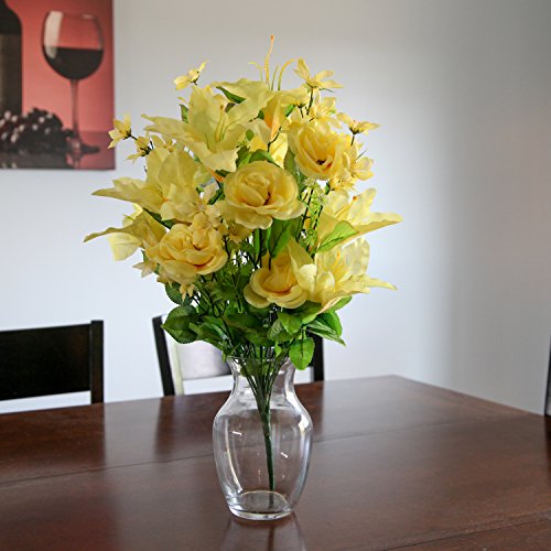 Home-X Bright Floral Bouquet with Tiger Lily, Camellia and Yellow Roses