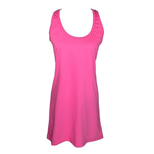Soft cotton in a long, loose tank top that flows almost to the knees. These features makes it a great nightgown for lounging and sleeping, and it is also the perfect cut to use as a swim cover-up. Lightweight and versatile, it is a must while packing for the beach, pool, or vacation.