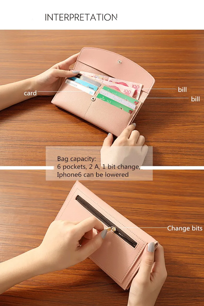 Name:Famale Hasp Zipper Long Envelope Wallet