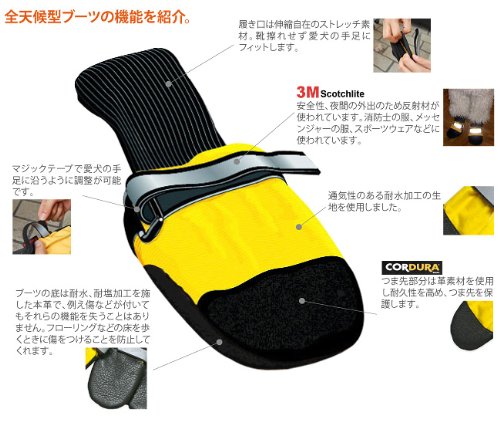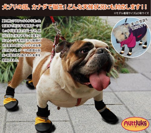 Studio : Muttluks Publisher : Muttluks Binding : Misc. Product Description AWXXLY Paw Size (Back to End of Nails): XX-Large - 5.5" Features: -All-Weather dog boots. -Color: Yellow. -Made with waterproof coated fabric. -Self-tightening Hook Loop straps allow for an easy, secure and quick fastening that ensures a snug and comfortable fit. -3M Scotchlite reflective material on the back of the strap provides safety for dogs by offering nighttime visibility. -Comfortable stretchy cuff is versatile and easily adapted for dogs with short or long legs. -Boot bottoms are made from treated, water and salt-resistant leather stitched with heavy-duty industrial bonded nylon thread. -Distinctive and reusable cloth mesh packaging can be used for storing or washing Muttluks, or for general storage. -To obtain proper size, measure dog's paw while standing from the back to the tip of the nails. -Available in 8 sizes. Specifications: -Itty Bitty: 4.5' H x 1.75' W x 0.5' D. -XX-Small: 5.5' H x 2.25' W x 0.5' D. -X-Small: 6.25' H x 2.5' W x 0.5' D. -Small: 7' H x 3' W x 0.5' D. -Medium: 8' H x 3.25' W x 0.5' D. -Large: 8.5' H x 3.75' W x 0.625' D. -X-Large: 10.5' H x 4.25' W x 0.625' D. -XX-Large: 11.5' H x 5' W x 0.625' D. - Paw Sizing Instructions. 0