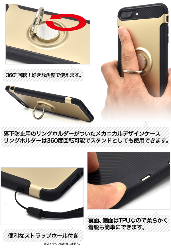 iPhone 7 Plus/iPhone8 Plusスマホリングホルダー付きケース