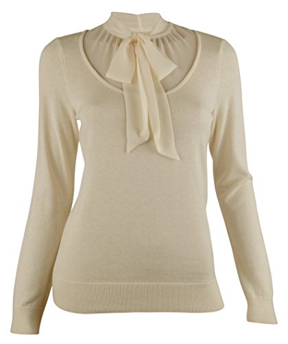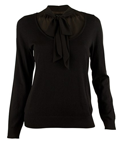 Ralph Lauren's chic sweater features shimmering faceted buttons and a flirty sheer bib with a self-tie neckline; Applied three-button placket; Long sleeves with ribbed cuffs; Cotton-viscose-silk-polyesterFeature