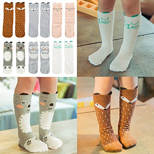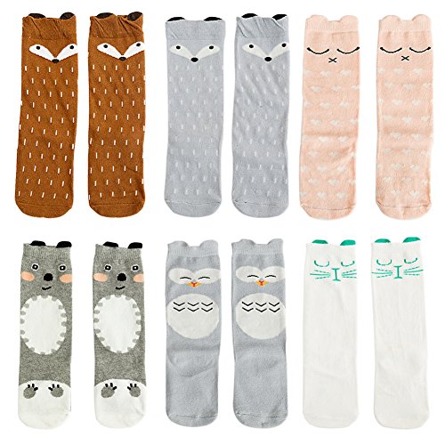 VWU 6 Pack Baby Girls Boys Knee High Socks Toddler Animal Socks 0-5Y