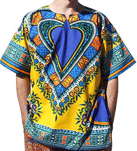 RaanPahMuang Bright Heart Cotton Africa Dashiki Plus Sized Shirt Plain Front
