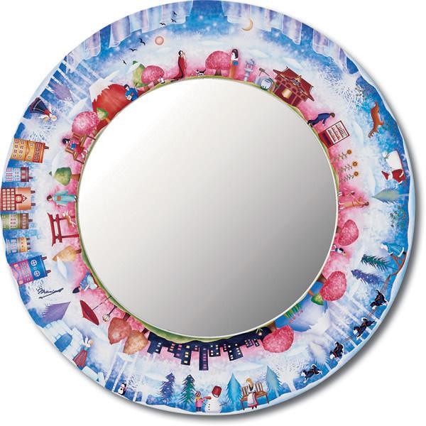 色彩鮮やかなイラストに、まあるい形がお洒落な可愛いミラー。プレゼントにも最適です♪