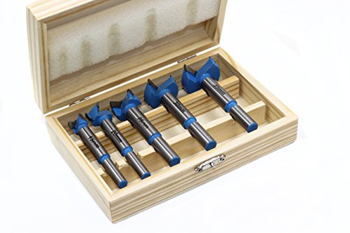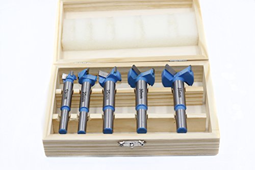 YUFUTOL-5 Pcs Wood Working Carbide Tipped Forstner Drill Bits Set(15-35mm Diameter) With Wooden Case