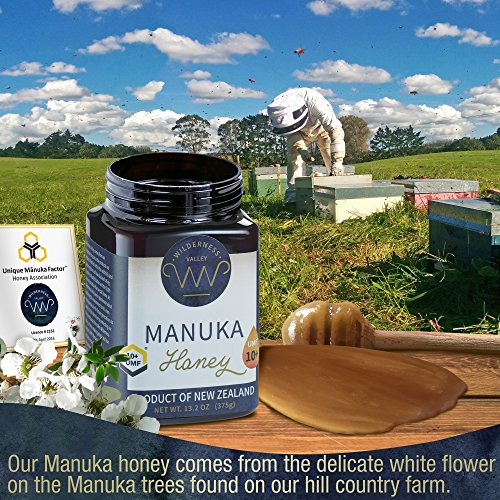 -. Binding : Grocery -. Brand : Wilderness Valley Honey -. Feature : SINGLE SOURCE - Wilderness Valley Manuka Honey is naturally produced on our family owned Ruatiti Station nestled amongst the wild hills and glistening rivers of New Zealand's King Country. Miles from civilization, crystal clear rainwater and native Manuka trees are all that's required for our bees to craft the finest New Zealand honey you've ever tasted. / FROM HIVE TO JAR - The entire process from harvesting the raw Manuka honey through to filtering impurities out and packaging the finished product is handled on site at our farm to meet stringent UMF purity and quality standards. Our passionate team are part of every step of production which means every jar tastes consistently smooth, creamy and simply delicious. / SUSTAINABLE PRODUCTION - We're passionate about nurturing our environment and follow best practice farming P.R.Inciples to ensure that future generations can continue to enjoy our slice of paradise. Every year we add to our conservation block of native forest with a portion of the profits from our honey, increasing the natural habitat of the endangered Blue Duck and Kiwi. / PROVEN UMF GRADE - Our premium quality honey is independently tested by a scientific lab to ensure it meets or exceeds the UMF 10+ grade requirements. This means every jar is packed full of the unique and beneficial properties which Manuka Honey is world renown for. / COUNTLESS HEALTH BENEFITS - Enjoy daily by the spoonful or combine with your favorite foods to take advantage of the many beneficial and healing properties of UMF grade Manuka Honey. 30 Day Money Back Guarantee if you aren't completely satisfied with your Wilderness Valley Manuka Honey - no questions asked! -. IsAdultProduct : 0 -. Label : Wilderness Valley -. Manufacturer : Wilderness Valley -. ProductGroup : Grocery -. ProductTypeName : GROCERY -. Publisher : Wilderness Valley -. Studio : Wilderness Valley -. Title : New Zealand Manuka Honey By Wilderness Valley (UMF 10+) Sustainably Produced on High Country Farm, Pure & Natural