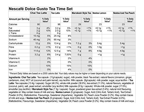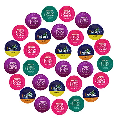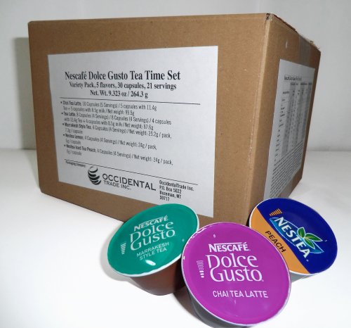 -. Feature : Nescafe Dolce Gusto 30-Capsule Tea Time Set - Gift Wrap Possible!! - 5 different flavors / 5 flavors, Nescafé Dolce Gusto - Chai Tea Latte, Tea Latte, Marrakesh Style Tea, Nestea Iced Tea Peach, Nestea Lemon / Only Stored, Packed & Shipped by Amazon! In 6x6x5 Box! Ships free with P.R.Ime Membership! / Choose your Gift Wrap at checkout! Eligible for Free Shipping! Track your delivery to your door or any door! Amazon Customer Service! N O T for Keurig or Nespresso Machines. They are only for Nescafe Dolce Gusto Coffee Machines! / Capsules shipped out of their original box to create variety package and lower shipping costs. Gift Wrap Possible!! N O T for Keurig or Nespresso Machines. They are only for Nescafe Dolce Gusto Coffee Machines!
