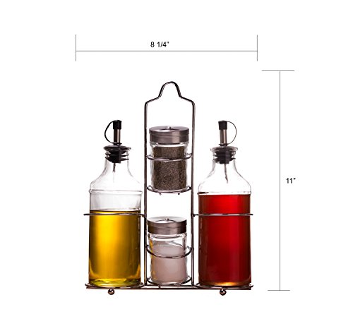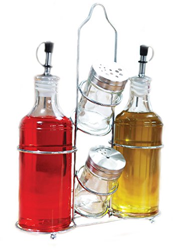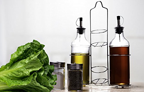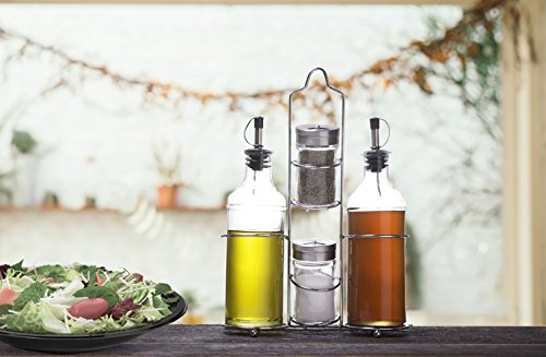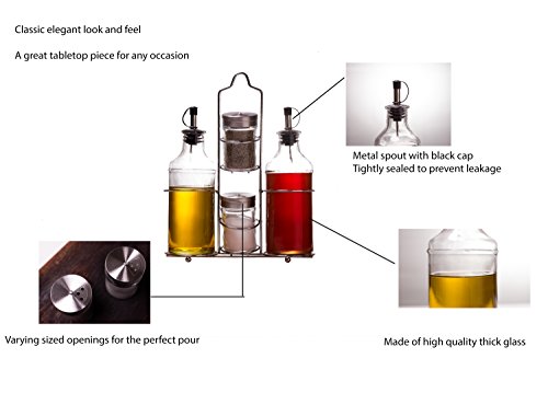 Palais Glassware 5 Piece Oil, Vinegar,Salt and Pepper Cruet Set with a Caddy - 14 Oz. Bottles - 3 Oz. Shakers
