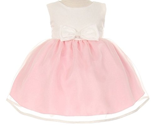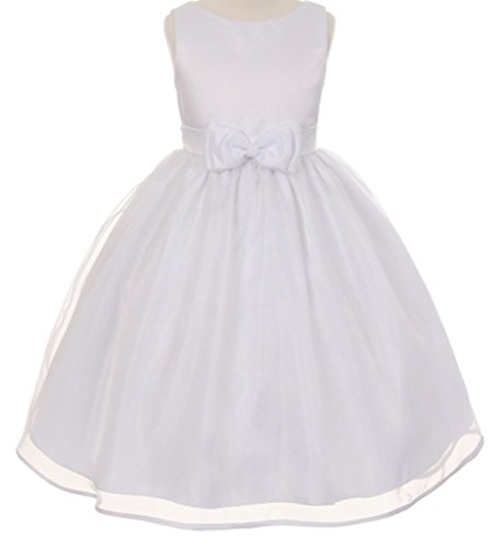 This dress is perfect for any special event! This dress features a gorgeous satin bodice and lovely organza skirt. The waist is accented by a adorable satin bow which matches the bodice perfectly. Have your little girl wear this dress for Flower Girl Dress, Easter Girl Dress, and other Formal Events.Feature