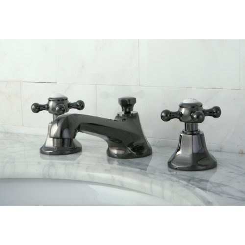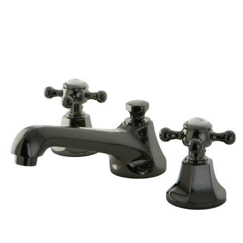 Kingston Brass NS4460BX Water Onyx Widespread Lavatory Faucet with Cross Handle and Brass Pop-up Drain, Black Stainless Steel