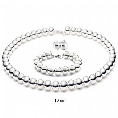 -. Title : Bling Jewelry Sterling Silver Bead Necklace Bracelet and Earrings Set 10mm