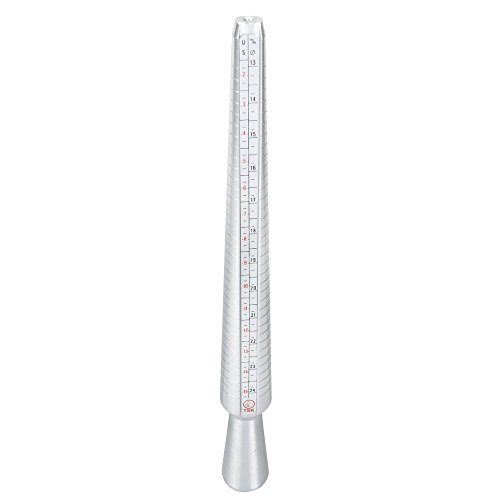 -. Brand : MOJUN -. EAN : 6702888813843 -. Feature : Metal ring stick measure tool with US sizes of 1-15 and European sizes of 41-76. / Ring sizer mandrel is made of aluminium material. It is lightweight and easy to handle. The 27 Pc ring sizer set is made of stainless steel. / Great for use on glass showcases. / Grooved on one side to prevent chipped stones. / This is great to give to customers or stock your store and save money. -. Label : MOJUN -. Manufacturer : MOJUN -. MPN : 28US1 -. PackageQuantity : 1 -. PartNumber : 28US1 -. ProductGroup : Art and Craft Supply -. ProductTypeName : ART_AND_CRAFT_SUPPLY -. Publisher : MOJUN -. Studio : MOJUN -. Title : MOJUN® Ring Sizer Mandrel Finger Sizing Measuring Stick Jewelry Accurate Tool Metal Size 1-13 with Gauge Set of 27 pcs Circle Models in Silver
