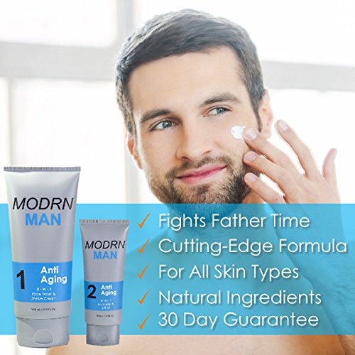 3 MINUTES A DAY is all you need with this powerful wrinkle remover system. Fight the signs of aging and prevent further damage, with our proprietary 2 Step Skin Care & Grooming System for men. Save time, money and your face when you wash, shave, repair, moisturize and protect it with this clean, non greasy, oil free system.