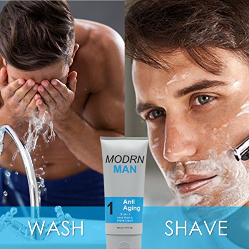 STEP 1: World's 1st 2-in-1 Anti Aging Mens Daily Face Wash & Shaving Cream. Fight Wrinkles while you shave, by using our proprietary Anti Aging mens daily face wash, with shaving cream built right in.