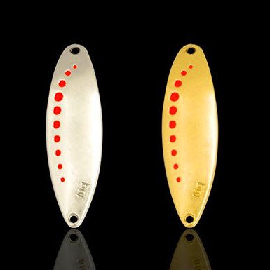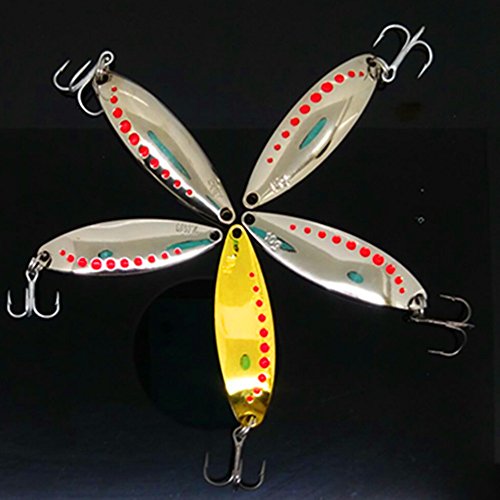 -. Feature : Premium components and durable finishes / Cast or trolled, this spoon sports a unique wiggling-and-wobbling action / The spoon is absolutely irresistible to pike, walleye, bass, and all hungry other game fish species / Contains 5 different color weights. Respectively is 7.5G, 10g*2 (gold and silver), 15g,*2 / FREE 5 feather Pendant