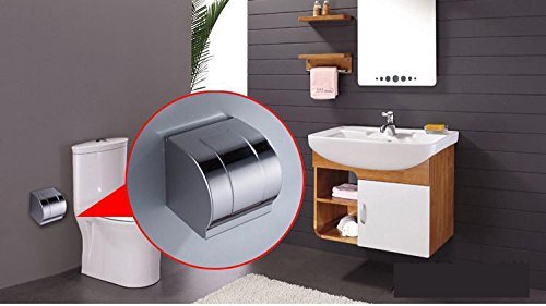 TEN-HIGH Stainless Steel Simple Square Toilet Paper Holder with Cover, Chrome