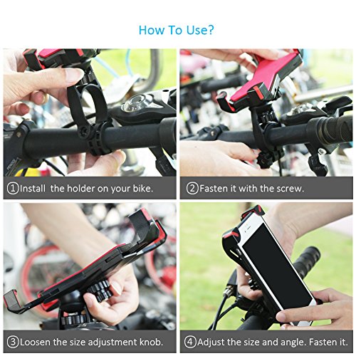 Q: How to install phone holder on bike? A: There are 4 steps for you to easy install the bike mount. According to the size of your handlebar, please make sure whether you need to install the removable plastic spacers before installation.