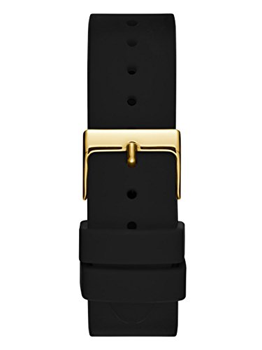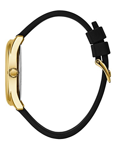 Analog timepiece combines sporty and sleek style with a black silicone strap and a polished gold-tone case. Quattro G logo dial.