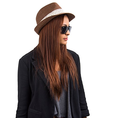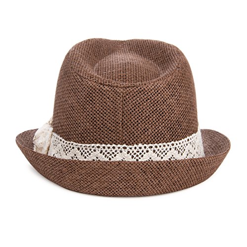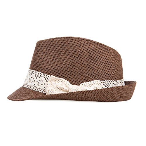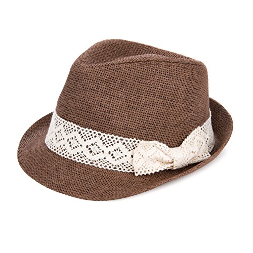-. Binding : Apparel -. Brand : eBigValue -. Department : womens -. Feature : Cross hatch stitching and hat chain add style and flare / Soft material makes wearing comfortable and relaxed / Protects head from the sun / Versatile Kangol Trilby With Skinny Brim That Can Be Worn Snapped Up Or Down / Do not machine wash -. ProductGroup : Apparel -. ProductTypeName : HAT -. Title : eBigValue Women's Trilby Classic Crochet Ribbon Bow Fedora Hat